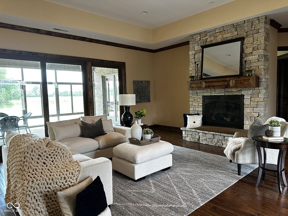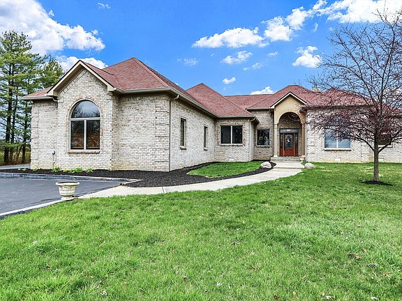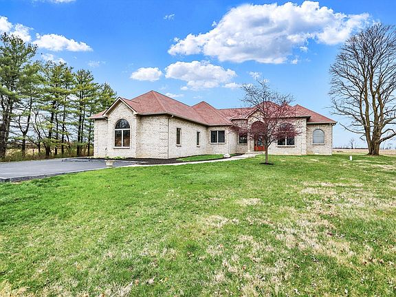 Don't be concerned with the days on market for this well-maintained home. Previous contingent offer fell through. This custom 3BR/3BA brick ranch offers 3,300 sq ft and sits on a wooded 3-acre lot. The great room features a stone fireplace and sliding glass doors to a glass-enclosed patio for year-round enjoyment. The chef's kitchen includes custom cabinets, a spacious island for 6, granite countertops, an electric cooktop with a custom hood vent, and double ovens. The home office has custom shelving, perfect for remote work. Enjoy 10-foot pan ceilings, 8-foot solid wood doors, custom oak flooring, and large Anderson windows that fill the home with natural light. For energy efficiency, this home features Styrofoam insulation and geothermal heating. The property also includes a 53'X27' pole barn with a 1BR apartment or office and a full bath. This exquisite home combines rustic charm with top-quality craftsmanship and thoughtful functionality.