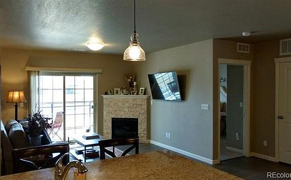 Convenient first floor, ranch style floorplan in Clocktower w/ covered underground parking garage! Desirable high-end finishes thru-out, including 42" cabinets & granite kitchen counter-tops, and hardwood type flooring! Both bathrooms also boast granite counter-tops and tile flooring. Gas log fireplace w/ stone surround! A/C & covered patio! Neutral colors thru-out...shows like a model home! Secured building entrance! Excellent floorpan and unit, should go quick! Close to great Clocktower shopping and restaurants, new hospitals & Civic Green Park! Walk to Highlands Ranch Town Center where multiple restaurant options include: Landsdowne Arms Bistro & Pub, Indulge Bistro & Wine Bar! Enjoy the use of any of the four Highlands Ranch rec centers. Quick access to C-470 makes it easy to get to Chatfield State Park, the mountains, or downtown Denver.