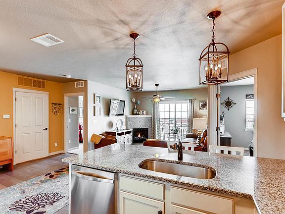 Full front range mountain views from all rooms. This light, bright & open 2 bed, 2 bath condo features a large master bedroom with walk-in closet, linen closet and sizeable shower. Don't miss the separate W/D room, beautiful hardwood floors, brand new tile flooring in the baths, upgraded lighting and stacked stone surround gas fireplace. The open concept living room flows right into the dining area and kitchen with an expansive slab granite breakfast bar, backsplash and includes all stainless steel whirlpool appliances. Front loading washer and dryer are included. This maintenance free living includes a heated driveway and 1 designated heated underground parking spot (the best parking location in the building closest to the door) with a storage unit in front of the parking space. Additional outdoor parking for second car or guests. NO pets and NO smokers. Walking distance to Highlands Ranch Town Center with shopping and dining. Landlord pays for access to all 4 Highlands Ranch recreation centers which have indoor and outdoor tennis and pools, fitness and spas. Easy access to C-470. One year unless you purchase a property using owner/realtor, then lease can end at any time.