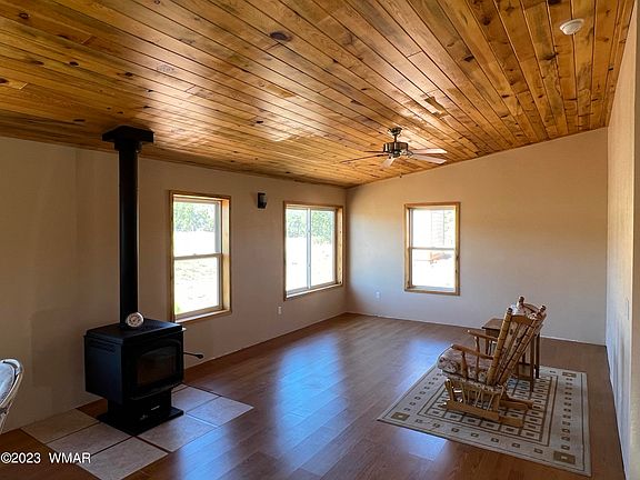 Looking for beautiful larger rural off grid/self-sufficient, secluded property in Snowflake? 43 acres with its own 8'' well. Open floorplan and fantastic views? This is a great custom home that boasts vaulted tongue and groove pine ceilings milled from a local forest fire, Concrete floors throughout, Lots of windows, ceiling fans, wood stove for heating, large windows that allow for tons of natural light to stream in, On Demand/Tankless water heater, 2 car garage, well house with 2500 water tank, fenced yard, solar system with 12k inverter and 12 panels. Sit out on the covered patio and enjoy the breath taking views. Property has potential to be ''Horse property'' or other farm animals with ease considering the topography and plentiful water supply. 30 minutes from Snowflake.