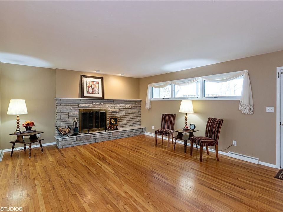 Nice family home in a great location on 1/2 acre lot w/mature trees & fenced in backyard! This 3 bed/2 bath ranch boasts beautiful original hardwood floors throughout the main floor, wood burning fireplace & sun room. Kitchen w/stainless steel appliances, dining area w/slider to deck, breakfast bar, island, desk & pantry. Updated main floor bathroom w/dual vanities, tile floor, soaking tub, & tile shower. Walkout lower level with new carpet in family room, full bath, & workshop/garden rm. Close to schools!