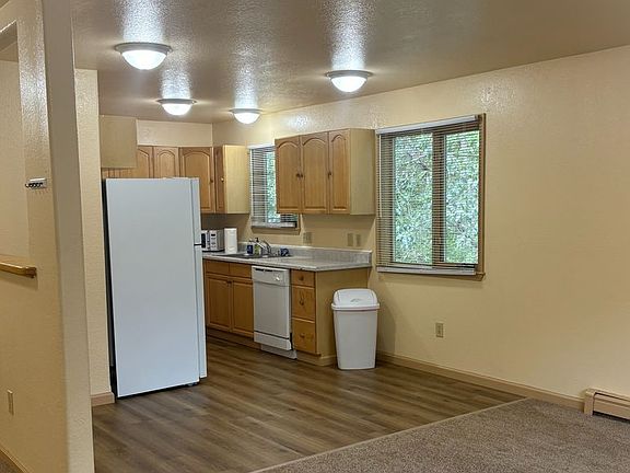 This cute 2 bed/1 bath upper level unit offers a fresh, modern feel . The fully equipped kitchen includes a refrigerator, stove/oven, microwave and dishwasher. The Arctic entry features a small storage closet, providing extra space for your belongings. The expansive living room is perfect for hosting friends and family. The unit includes it's own washer and dryer for your convenience. You only pay electric, all other utilities are included. This apartment offers both comfort and convenience in a quiet location.