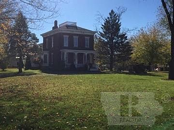 This beautiful Historic Brick Home has been very well preserved. From the spiraling staircase to the pocket doors, original mantles, woodwork. Hardwood floors, the breathtaking entryway and a widow walk with bonus 40x88 building that is insulated with heat & central air, and it's own bathroom. The building has an office space and plenty of working space for any car enthusiast or wood worker. There are 3 overhead doors and 1 walk in door. The yard has a park like setting. This home is definitely a one of a kind.