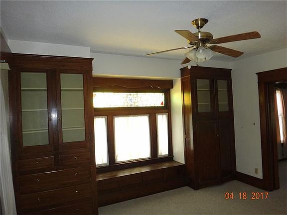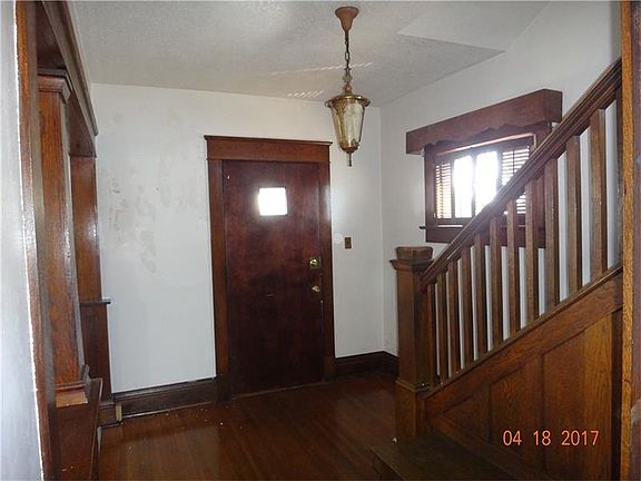 Welcoming front porch invites you in to a spacious foyer adorned with hard wood flooring and oak trim adjoining a generous sized living room featuring a beautiful ornamental fireplace in the corner. The dining room offers plenty of room for entertaining with pocket doors dividing the living room and features stained glass windows flanked by built in china cabinets. Off the kitchen is a generous sized wood deck and level back yard. Second floor features 3 bedrooms and a full bathroom, master bedroom offers a 7x6 walk in closet. New fresh coat of neutral paint accentuating oak trim throughout. Updated gas furnace 200 amp service. New garage roof has been installed as well as new window, a fresh coat of paint and new man door on garage.
