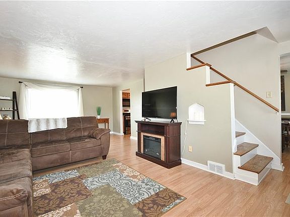 Cape cod w/huge yard & level entry on quiet Baldwin street! You will love the huge 23 x 13 Living room - so bright & spacious! The separate dining room was formerly a 1st fl bedroom. The galley style kitchen features plenty of wood cabinets & counter space. Stainless steel appliances, including a 5-burner gas stove, MW oven, & refrigerator, washer & dryer remain with the house. A porch, just outside the kitchen door, is perfect for grilling. Laminate floors were installed on the 1st floor in 2012. New wall-wall on stairs & 2nd fl - prior to listing. Newer windows with lifetime warranty-installed in 2017. Remodeled full bath & 2 huge bedrooms on 2nd fl. Ceiling fans in DR, Kitchen & each BR are included. New front exterior door. Huge rear yard has so much potential. One-car integral garage with lots of room for extra cars on rear parking pad. Great location - close to the Southside, Oakland & the South Hills. PAT bus line, too. Electric fireplace - excluded from sale. Shed - as is.