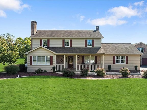 Perched on a quiet, picturesque Cul-De-Sac on 1.5 acre lot this neat as a button 4 bed, 2.5 Bath Nazareth colonial home, loved and cared for by one owner! Prepare to be lured by this home's unique characteristics & charm! Approaching the covered front porch w/ retractable awning & through the front door, step into the open foyer that flows to main living area. Stunning original, refinished hardwood floors & fresh paint throughout! Enjoy the naturally lit living room, or gather around the table in the formal dining room- an entertainer's delight! Craft your culinary creations in the gourmet kitchen w/ an abundance of cabinet storage & sparkling granite countertops to make meal prep a breeze. Laze near the cozy fireplace w/ a page turning book in the family room, your sanctuary to unwind. Completing the main level is a home office/den for your studies, laundry room & half bath. Retreat to the upstairs master bed, offering a private en-suite bath. Three more spacious bedrooms complete the 2nd level! Bring your creativity & customize the partially finished basement- endless possibilities! Paradise awaits you in the backyard, surrounded by vinyl fencing for your privacy & featuring an in ground swimming pool & rear patio! This home has an attached 2 car garage & detached 2 car garage/possible workshop w/ fully finished living space above to utilize as extended living space or man cave! Whole home backed up w/ Generac generator & located near Rte 191, eateries, parks & trails!