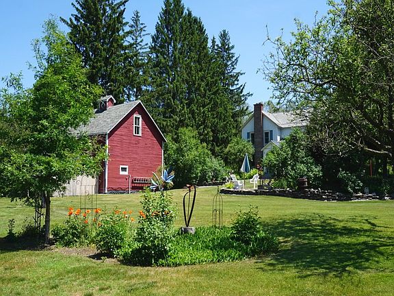 Beautifully maintained country home with an attractive oversized 2-story red carriage house and gorgeous, meticulously maintained 1 acre lot! A comfortable rocking chair front porch leads into this 3 bedroom home that has charm and character galore yet offers modern updates. Spacious rooms throughout include a vaulted ceiling living room with exposed wood, lots of windows and built ins opening nicely to a knotty pine country kitchen with all appliances and pantry plus an adjoining greenhouse room. Lovely sunny formal dining room with wide pine floor and den or office with wood stove hookup and hardwood flooring. Heated floors in living room, kitchen, greenhouse room and first floor bath. Upstairs you will find a large master bedroom and a wonderfully updated three-quarter master bath with tile shower and floor and very nice wainscoting. There are also 2 pretty family bedrooms and a half bath. The yard and lawn are incredible . . . amazing landscaping, lots of perennials, many flowering and fruit trees and bushes, a stone patio, a lovely private bench and sitting area plus a good sized garden shed. Awesome two story carriage barn with electric, heat and even a cupola and man cave for all your vehicles, toys and hobbies. This is the country property you have been searching for! Only 1 mile to Lake Bomoseen, 2 miles from Castleton University and the rail trail, close to skiing, golf, numerous lakes and an easy drive to Albany Airport.