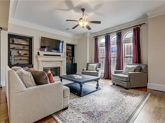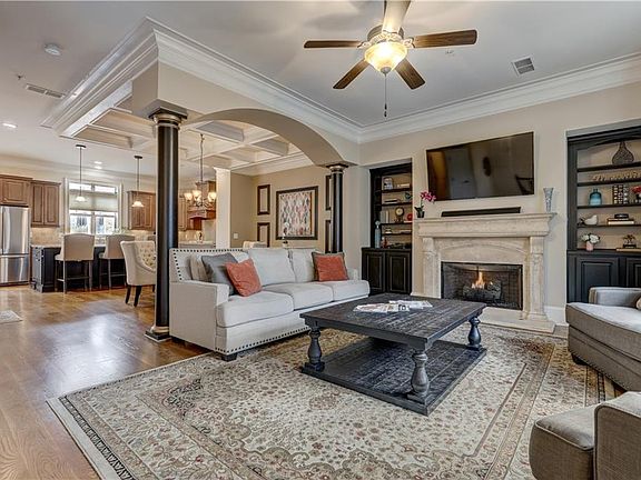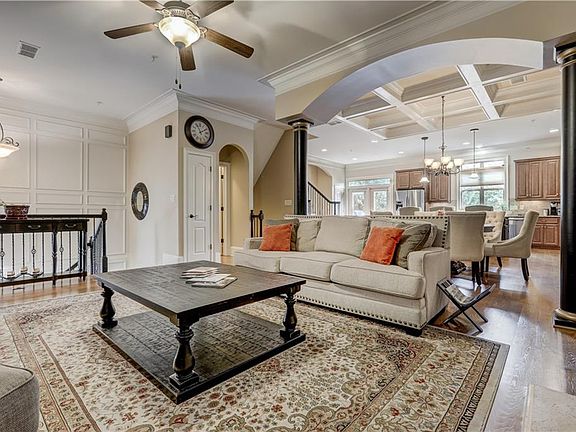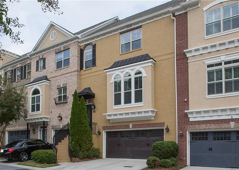Fabulous townhome shows like a model! Easy and convenient access to restaurants and retail, medical centers, MARTA and more! This open floor plan is loaded with custom features - 10 foot ceilings on main, rich crown moldings, coffered ceilings, columns, oversized granite island, custom cabinets and stainless appliances. 3 bedrooms on upper level plus laundry room. Relax at night by the fireplace and read a book, or enjoy your Sunday afternoon watching TV in the lower level media room with bar and beverage chiller. Lots of storage in the garage and throughout the home. Located in a gated community just minutes away from