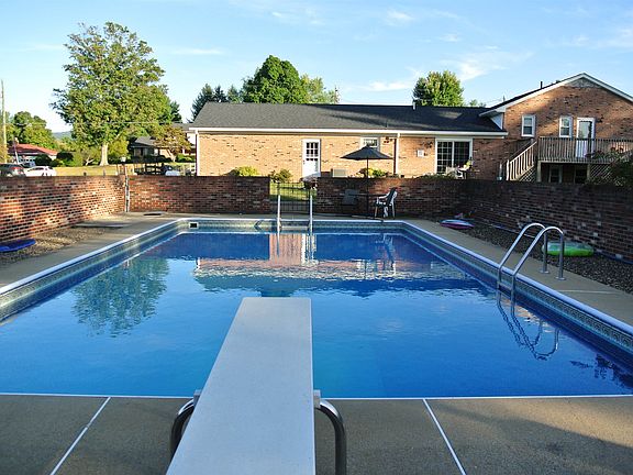 What to look at first? Well maintained, mature landscaping welcomes you to this solid brick tri-level home with so much to offer! The foyer opens into the main level complete with living room, dining room, spacious eat-in kitchen, which opens onto the rear patio with a view of the manicured back yard and in-ground swimming pool! Just a short flight of stairs to the upper level consisting of 3 bedrooms 2 full baths including the master suite complete with private access to the back deck - which is equipped with a plug-in for a hot tub. Downstairs, offers a cozy family room with adjoining guest suite, and full laundry room with outside access! The two car attached garage has extra storage in the back which is perfect for pool supplies. The 20' x 40' swimming pool complete with diving board is surrounded by a brick wall with lights, perfect for a peaceful afternoon or evening swim! The detached workshop in the back yard with electricity offers even more space! This home is conveniently located a short drive to 254 with easy access to interstate 81. Roof and gutters replaced in 2020, A/C & windows in 2022, new water heater installed in 2019. Agent related to seller. Open house - Sunday, Oct. 15, 2023, 2-4 PM