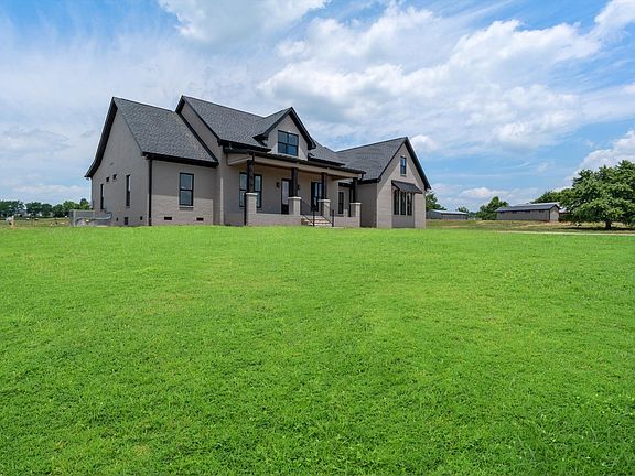The Sun is shining and the birds are chirping on this beautiful 3.54 acres custom built painted brick farm home. Step inside this lovely home, with all bedrooms on main level, open floor plan w/ hrwd in every room including bonus room. Additional features include high ceilings in main area & vaulted ceiling w/wood in primary bedroom. Double oven, wet bar, beautiful countertops, huge covered back porch w/wood burning fireplace along w/breathtaking views. Additional 10 x 40 shed for extra home storage. Perks for 5 bedroom so bonus could room could be used as a bedroom. Bonus has Closet & bath