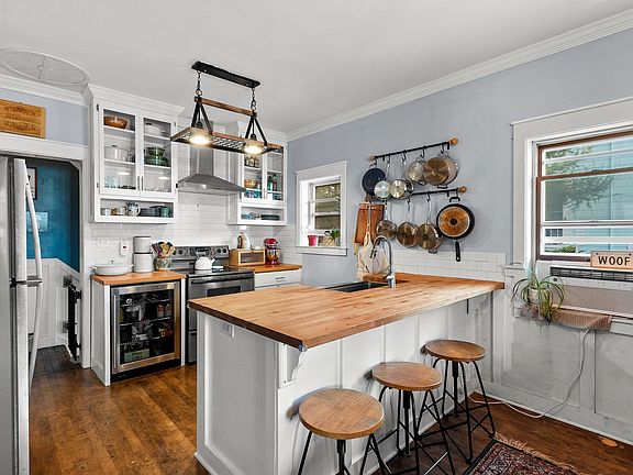 Welcome home to this charming bungalow just steps from the Fox River Trail, parks, and restaurants. Thoughtful updates blend comfort and character with refinished hardwood floors, crown moulding, and stylish lighting throughout. The kitchen features a butcher block island and subway tile backsplash, while the heated 3-season porch expands your living space. A bonus lower-level area is ideal for a fitness room. All interior and exterior doors have been replaced, and the fenced yard is perfect for pets. To ensure peace of mind, the roof will be replaced before closing, and a UHP home warranty will be provided.
