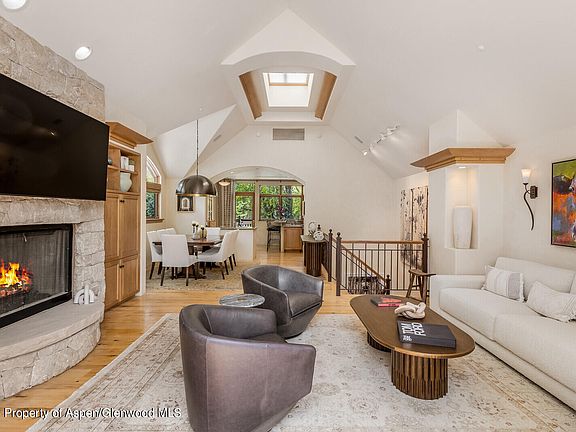 This townhome offers one of the best locations in downtown Aspen, with views of both the Roaring Fork River and Aspen Mountain. 4 bedrooms with primary suite and deck enjoying sounds and views of the river. A generous and open living level offers both comfort and luxury. 3 decks, 2-car garage, fantastic layout with great volume and light. Ideal core location on a quiet, residential, dead-end street, easy walking to all of Aspen's shopping, dining & skiing. Radiant heat & snowmelted driveway, evaporative cooling, 3 fireplaces, dumbwaiter, maple flooring.