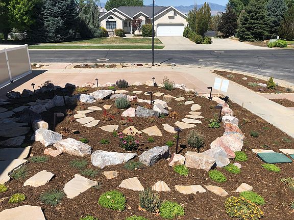Laundry shootAuto sprinklersXeriscape custom artistic landscapingVegetable garden boxesFinished basementGreat-room open layoutMature evergreen trees