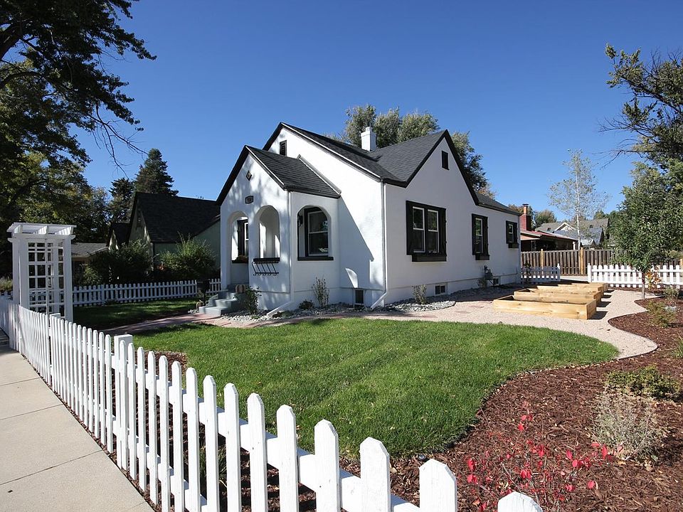 Fall in love with this beautiful updated home close to downtown Colorado Springs! Located in a great neighborhood and on a large corner lot. Drive up to the home and you will notice the white picket fence, the pergola on the west side of home with the new landscaping and garden boxes with drip stations for your own gardening area, The covered front porch and exterior design of this older home is very appealing but once you walk in the door you will immediately be surprised! It is lovely! Hardwood floors, wainscoting walls with 5" baseboards and new textured walls and ceilings with new interior paint throughout. Arch ways, built in pantry, new light fixtures and hardware, new doors and new windows. There is so much more! The kitchen offers gas stove with hot water pot fill above the stove, new white shaker style cabinets, new SS appliances and Quartz countertops, windows in the kitchen for natural light. Basement is finished with a mother n law suite!