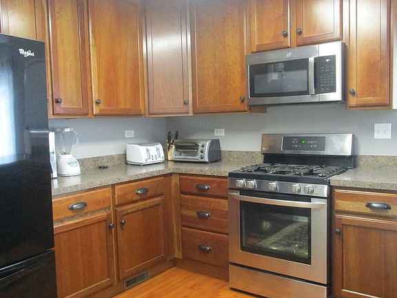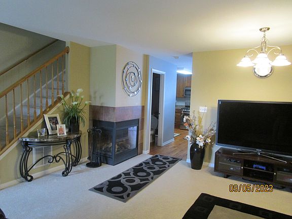 Elegant unit with an open floor plan! Large kitchen with plenty of maple cabinets and counterspace, Island, eating area, sliders to balcony. Pantry closet. Maple hardwood flooring in the kitchen, dining area and a half bathroom. See -through fire place in the living room area.6-panel doors t/o, ceiling fans, and on- trend paint throughout the house. Primary bedroom has a private bathroom. Second floor laundry room. Loft. Finished English basement .Complex has a clubhouse that hosts a gym, exercise facility, game room, party room and a pool! Walking paths around. About 15 minutes to Metra and I-90. Award winning schools.