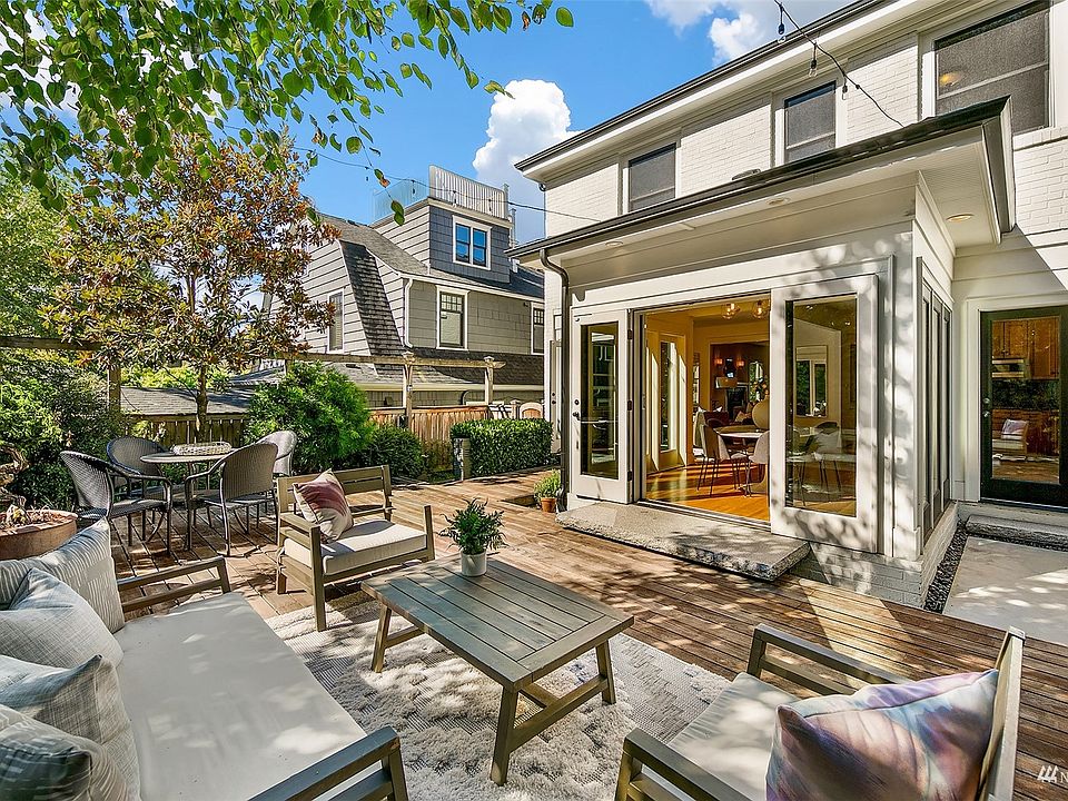Bright and carefree, this 1925 traditional home invokes tranquility and seclusion in an inspiring urban setting. Lovingly restored for today’s lifestyle, the craftsmanship and elegant detailing remain unimpaired. The main level features an open, eat-in kitchen and living spaces that harmonize flawlessly with the expansive Ipe deck and low-maintenance private garden. Upper level boasts a lavish primary situated on the entire west side of the home complete with walk-in closet, laundry, 3/4 bath and 2 bedrooms. The fully finished lower level hosts a large media room, wet bar, and wine cellar. 1 car garage provides versatility from this coveted location, a few blocks from Volunteer Park and Capitol Hill’s north Broadway and light rail station.