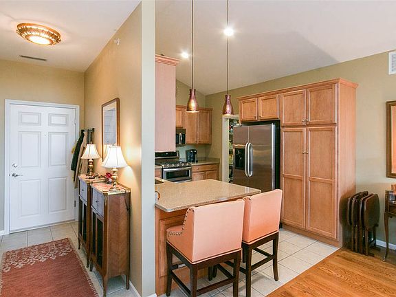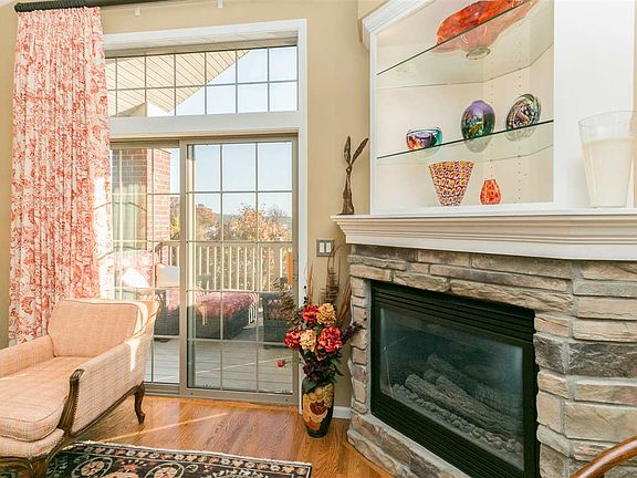 Comfortable, upscale 1,524 sq-ft 3BR, 2BA 3rd-floor condo w/ secure underground parking/storage, universal design, bldg elevator & community room, cathedral & 9' ceilings, fireplace, energy efficiency. Kitchen has maple cabinets, quartz counters, gas range, & pantry/laundry room. Large covered porch w/ expansive views of green space and timber from well-crafted lodge-like bldg away from other developments but close to area amenities. Open plan w/ cathedral ceiling, oak floors, striking built-ins. Bus route.