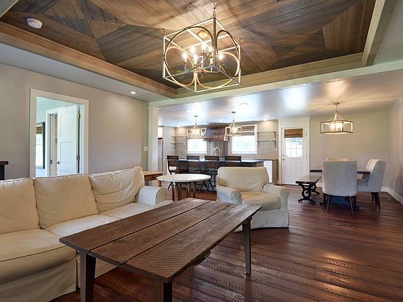 ON THE MUCKALEE CREEK! This unique property is situated on +/5.558 acres of privacy, solitude, and fun times! With rustic elegance this two bedroom and two full bath is the perfect abode for the simple life. The open living space includes the kitchen, dining area, and great room. Two full-sized bedrooms with private baths flank the living space. The living area has a tray ceiling that is inlaid with heart pine. In fact, the entire house has heart pine flooring! The kitchen has a gas cook top with electric oven, a center island with bar seating, refrigerator, dishwasher, and microwave. The counter tops are extensive and are finished with solid surface material. Adjacent to the kitchen is the laundry room with a stacked washer and dryer, overhead storage, and folding counter. The secondary bedroom is spacious and includes window covers and a ceiling fan. The private bathroom is finished with a tub/shower combo with a beautiful tile surround, pedestal sink, and walk-in closet. The Primary bedroom is also spacious and accented with a tray ceiling inlaid with pine. The bathroom has double vanity space complete with a dressing/make-up space. A huge, tiled shower completes this inviting bath. Outside you will find a detached double garage complete with covered access. Other features include 1) recessed lighting 2) ceiling fans 3)full equipped kitchen 4)washer & dryer 5)updated lighting 6)some furnishingDon't miss this one! A dream property...Call a Realtor today! (USDA eligible area 3 Parcels (+/-1.762+3.684 +0.112= +/-5.558 Acres Total)