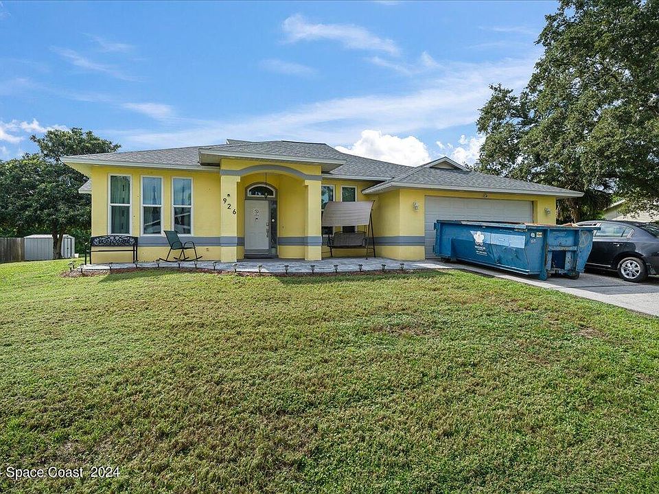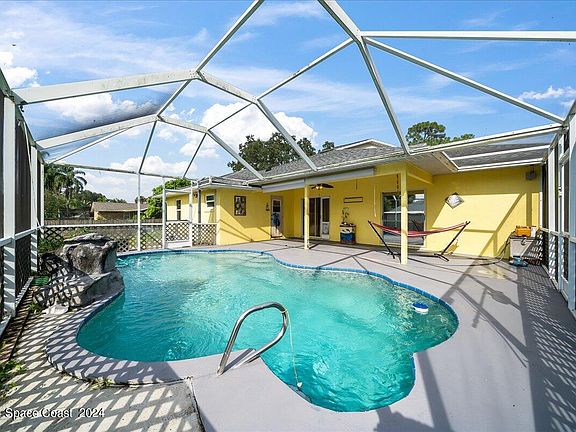 Welcome to this 4 bed 2 bath pool home in the highly desirable Lockmar area in Palm Bay. Just under 2100 sf of living space on an oversized .34 acre lot. In addition to the 4 bedrooms is a separate office space that could work as a 5th bedroom as well. Vaulted ceilings. Laminate flooring throughout the living area. Roof was put on in 2020 and the AC was replaced in 2022. Brand new water heater! All hurricane rated impact windows throughout the house installed in 2024!. Bright and open floorplan. Large kitchen with tons of cabinet and counter space. Cool off in your sparkling in-ground pool. This home has tons of potential! Great location and the big ticket items are already done for you. Don't miss your chance to own this Lockmar home!
