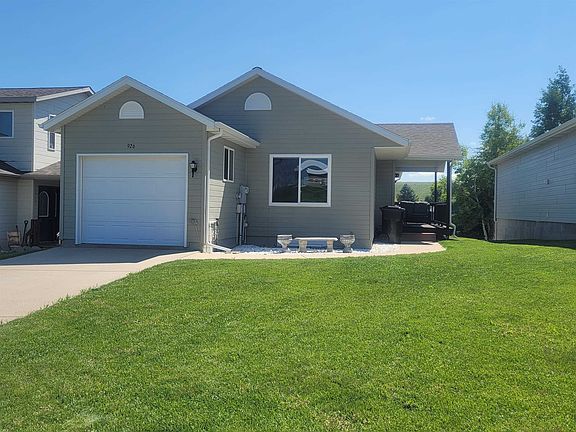This Spearfish home has 3 bedrooms, 2 baths on two levels of 1988 sq ft. Everything you need is on the main level including laundry/mud room off garage and kitchen. Kitchen has a large window to enjoy the beautiful views. Enjoy the large living room and 2 bedrooms on the main floor. Downstairs there is a large family room with an efficiency kitchen, walkout, conforming bedroom, full bath, stackable washer and dryer and a bonus room that is currently used as storage. Heritage Patio Homes has a green commons area at the back of the yard for extra room to play with the dog or kids (HOA fee is for that area). Well taken care of home! Better views than other streets in this area. Renters are month to month.