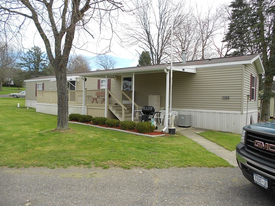 Almost like new. 10-year old mobile home in lovely Birchland Trailer Park. Peaceful park setting for almost maintenance free living. Well maintained home with 3 bedroom. Bump out could be 4th bedroom or office/den. 2 full baths. Handicapped accessible. Nice partially covered deck to enjoy the outside. Stove/refrigerator included. Central air and lots of storage.