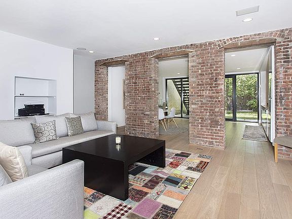 Stunning, renovated & fully furnished garden apartment with large private yard in beautiful Hudson Street townhouse. Ideal for a couple or single occupant, this serene apartment is a tasteful blend of contemporary mixed with classic details, with attention to detail throughout. The expansive kitchen / living / dining area features floor to ceiling doors/windows framing the large landscaped yard, perfect for entertaining. The sleek all-white kitchen is opposite original brick archways and exposed brick walls. The oversized bedroom features original marble mantel and plaster ceilings. Wide plank white oak flooring throughout. Two walk in closets. Gracious entry foyer. Central air and heat. Built in speakers. Bonus bar in the basement, along with laundry in large storage area. No pets. A unique find on one of Hoboken's most coveted blocks.