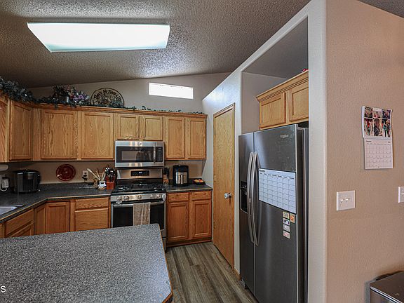 This home located in north Bismarck is sure to check all your boxes! The open concept allows for great functionality. The living room is adorned with great natural lighting. Adjacent is the dining area with a new (2023) patio door. The kitchen has a peninsula, pantry, stainless steel appliances, and a window that overlooks the backyard. Down the hallway is the large primary bedroom complete with a custom bathroom and a walk-in closet. The updated bathroom has a large custom walk-in tile shower. Also on the main floor is an additional bedroom and a full bathroom. Downstairs is a one-of-a-kind cozy family room which also has a wet bar. Down the hallway is the laundry/mechanical furnace room, a full bathroom, and two bedrooms, one with an extra large walk-in closet. The garage measures 22'x24' for 520 square feet and the garage is heated. There is a 10'x24' camper/boat/trailer pad next to the house. The backyard has a 18'x52' patio and a 14'x18' (252 sq ft) shed complete with electricity, insulation, and a 7'x7' garage door. Updates to the home include shingles (2018), microwave hood (2018), water heater (2019), backyard patio (2021), A/C + furnace (2021), humidifier (2021), refrigerator (2023), newer toilets, and luxury vinyl plank flooring throughout the main floor (2023).