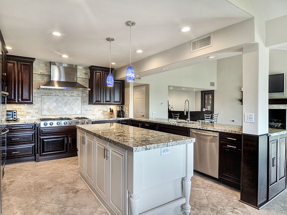 Fabulous Panoramic & City Lights View!*Stunning home located high on the hill*Plenty of room for equestrian facilities*Enter through private gates & enjoy the lush landscaping, mature vineyard & meandering gardens*Shimmering Leaded glass doors beckon you to the grand entrance w/two story high ceilings*Formal living room has elegant fireplace & room for piano* the formal dining room overlooks patios & gorgeous views*New kitchen offers dark wood cabinetry, granite counters, stainless appliances, center island, breakfast nook w/panoramic windows overlooking the views* Kitchen Opens to huge family room w/fireplace, travertine floors, walk in bar, wine room & sliders to the yard*Downstairs bedroom is perfect for guest quarters*Additional downstairs bonus room has huge private bath & doubles as second master*Master bedroom enjoys spectacular views from private veranda, warm & inviting fireplace,vaulted ceilings, built in wet bar, modern master bath w/oval tub & dual vanities*Fabulous ground accented by patios areas, fountains, rock pool & spa w/water features & slide, built in BBQ area & absolutely incredible panoramic views*Amenities include gated entrance, built in cabinetry, crown moldings, high ceilings, new modern bathrooms, basketball/sports court area