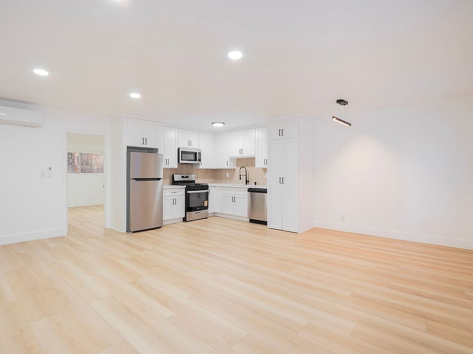 Inside, you'll find a spacious open layout with new flooring, recessed lighting, and oversized windows that fill the home with natural light. The sleek kitchen features brand new stainless steel appliances, quartz countertops, and custom cabinetryperfect for cooking, dining, and entertaining. Both bedrooms are generously sized with ample closet space, while the updated bathrooms showcase designer fixtures and modern tilework.