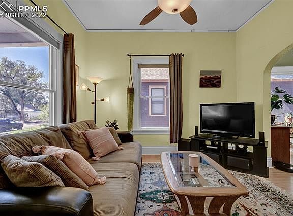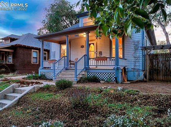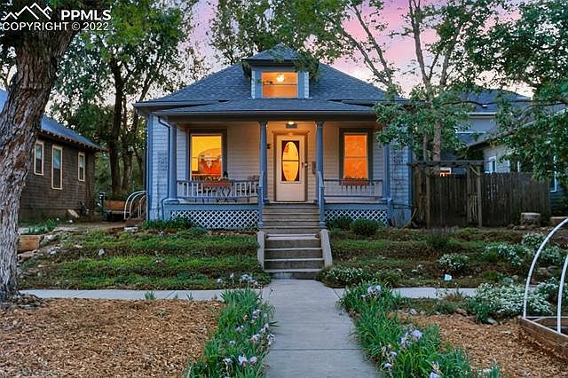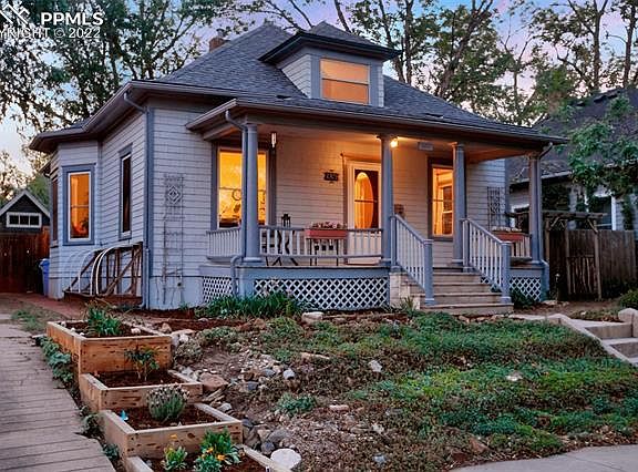 Character and charm along with the excitement and convenience of downtown living! This updated bungalow is lovely inside and out! Enjoy the covered front porch or private rear deck with your favorite beverage! Prepare to be impressed and pleasantly surprised from the moment you walk into a dedicated entry leading into the living room that is light & cozy - perfect for entertaining or simply relaxing. The 9 ft ceilings w/ crown molding highlight the grand dining room. Big, open, and bright, thanks to the beautiful bay window -- this room is ideal for hosting friends or gathering for meals. The kitchen boasts newer tile flooring, a counter bar along with ample cabinet and counter space as well as walk-out access to the backyard. The bathroom has a charming claw foot bathtub and connects to the primary bedroom that you will find quite spacious with a walk-in closet! The hidden gem of this home is the attic adding an additional 225+ square feet! Access this bonus room via a spiral stairway and step into a sweet yet large alcove providing an added sanctuary to use as a craft room, study, or office. With bright natural light and room to spare -- this may become your favorite retreat. Out back, bring your grill and enjoy the lovely deck in your private fenced-in backyard. Complete with lovely gardens, stone patios and chicken coop! The large shed/workshop provides extra storage for bikes, skis, and yard equipment. The unfinished basement hosts the laundry room and ample storage space. Updated vinyl windows, newer plumbing, & electrical are some of the modern gems in this vintage home. This lovingly cared for home is a pleasure to experience and is walking distance to multiple coffee shops, schools, walking trails and is literally minutes from the center of downtown, Colorado College as well as I-25 access. A real downtown opportunity not to be missed!