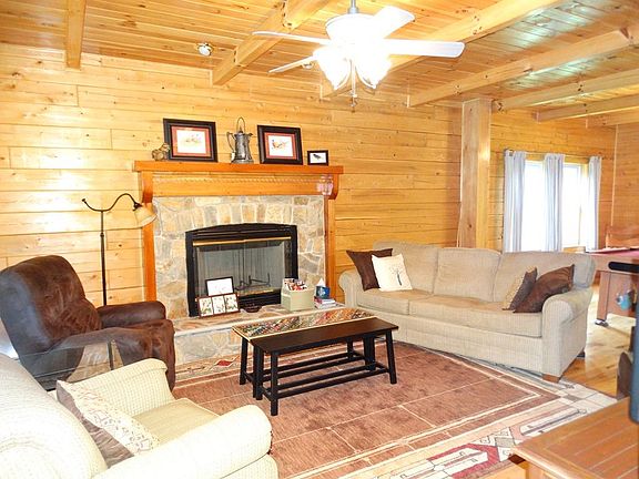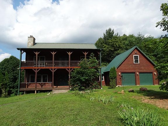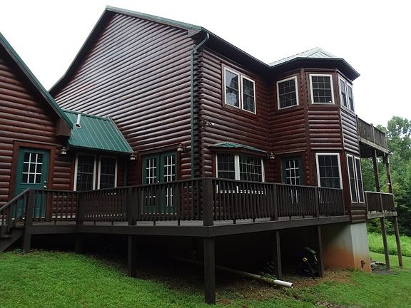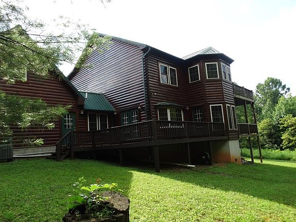 Custom built log home on 5+ acres, Home features: 3 BR, 3.5 bathrooms, 2910 sq. ft. Hardwood and tile flooring throughout home, Spacious living room has a gas log fireplace, Kitchen features breakfast nook as well as formal dining area, custom cabinets, and granite countertops. There is also an office and laundry room on the main floor. On the upper level you have 3 bedrooms and 2 baths. Huge master suite with double doors going out to a a covered porch with swings. Master bath has a two person hot tub surrounded by windows and also offers a private balcony. 2 car attached garage with 1/2 bath and 500 sq ft of storage room that could easily be finished into living space over garage. Full basement features superior walls, wood burning furnace and a room that is plumbed for a full bath. Home comes with a back up generator wired to the electrical system. Heat pump with a gas pack. This a beautiful quality built home.