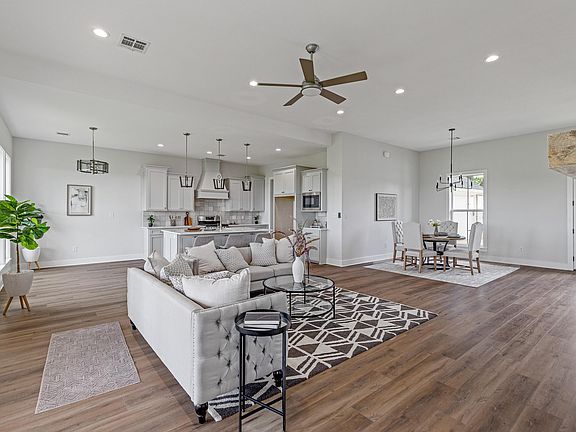 This meticulously designed five-bedroom, three-bathroom home offers an open-concept layout perfect for modern living. Updated flooring throughout the house. High ceilings and large windows flood the living, dining, and kitchen areas with natural light. The kitchen is a chef’s dream, featuring an island with counter seating, a gas range, granite countertops, a beautiful tile backsplash, and soft-close drawers and cabinets. The spacious living room includes a fireplace with built-in shelving and cabinets, creating a cozy, inviting atmosphere. Double doors lead to a covered patio, ideal for outdoor relaxation. The master suite is a true retreat with a tray ceiling, large windows, and an ensuite bath with double vanities, a separate tub and shower, and a generous walk-in closet with convenient access to the laundry room. The split floor plan separates the master from the other well-sized bedrooms, ensuring privacy for everyone. Outside, enjoy a covered front porch, a large driveway for ample parking, and a spacious back porch for entertaining. This home blends style, functionality, and comfort — perfect for any lifestyle!