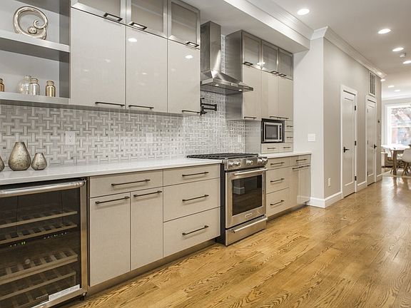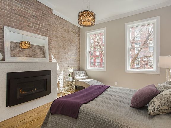 This beautiful renovation is a 4 story single family located in a very desirable part of Hoboken with a 2-tiered private fenced patio/garden that offers 500 sq ft, a built-in grill and a fire table. With exposed French entry doors, this gorgeous home has much to offer. Over 3000 Sq Ft of living space with solid oak flooring, 5 bedrooms and 3 1/2 Baths. A fully equipped chef's kitchen with stainless steel KitchenAid appliances including a five-burner gas range, dishwasher and a wine cellar. White quartz countertops, marble tile backsplash and modern custom European cabinetry. Two zones of HVAC with two NEST thermostats and two zones of tankless HW. This parlor level offers an open floor plan that combines living, kitchen, dining, powder room and access to the garden. Over 9' ceilings, exposed brick and a gas fireplace. 2nd floor features over 10' ceilings, master bedroom w/ a gas fireplace, custom walk-in closet and a luxurious bath with a dual vanity. 3rd floor features over 10' ceilings, a full bath with dual vanity, Samsung W/D and staircase for easy access to the rooftop. The garden level offers a 2nd living area with full bath, a wet bar and access to the private patio/garden. Located just a few blocks away from Washington St. for easy access to NJ Transit Bus terminal/ Trains including the Path to NYC and near local restaurants, shops, parks and schools. Rental parking 1 block away. A Must See!