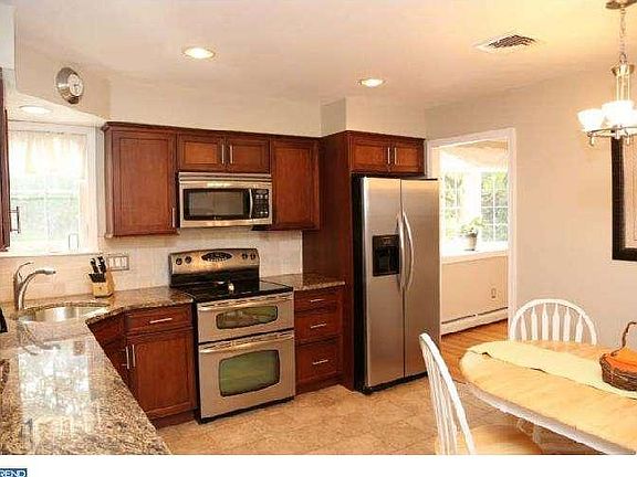 This lovely home is move-in ready. Step inside and see the beautifully updated, eat in kitchen, which includes abundant cherry wood cabinets, granite countertops, tile floor and back splash, breakfast bar and stainless steel appliances, including a double oven. The kitchen overlooks the welcoming family room, which has a full wall brick fireplace. Sliders from the family room provide easy access to the three season room. Nature is invited in through newer bay windows in the living room and dining room. Beautiful hardwood floors are found on both the first floor and throughout the second floor. Updated bathrooms, with granite and marble top vanities give a contemporary look. The large deck, adjacent to the sunroom, provides easy entertaining in the level and serene backyard. Replacement windows, crown molding, ceiling fan/lights are some of the many other fine features offered in this lovely home. Students from this community attend highly rated Gwynedd Square Elementary School located a few blocks away and North Penn high school is 5 minutes away. This home is conveniently located near the PA turnpike, KOP and Merck. Shops, restaurants, and parks are nearby.