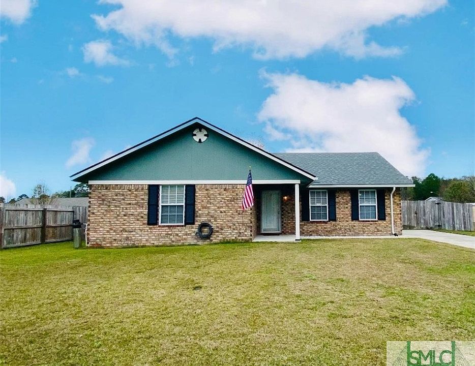 Check out this well maintained Brick home in the Waterfield Subdivision! This move in ready Home has been freshly painted inside and out. Covered front porch, Vaulted ceiling in the family room, open dining room, tiled kitchen and bathrooms, wood flooring in common areas (no carpet in the entire home), & large inside laundry room. This split floor plan home has plenty of space, almost 1600 sq ft. The fenced in backyard offers a shed for storage and double gates for easy access. Roof is 5 years old. This home is conveniently located close to shopping, schools, and Fort Stewart. Call today to view this home!
