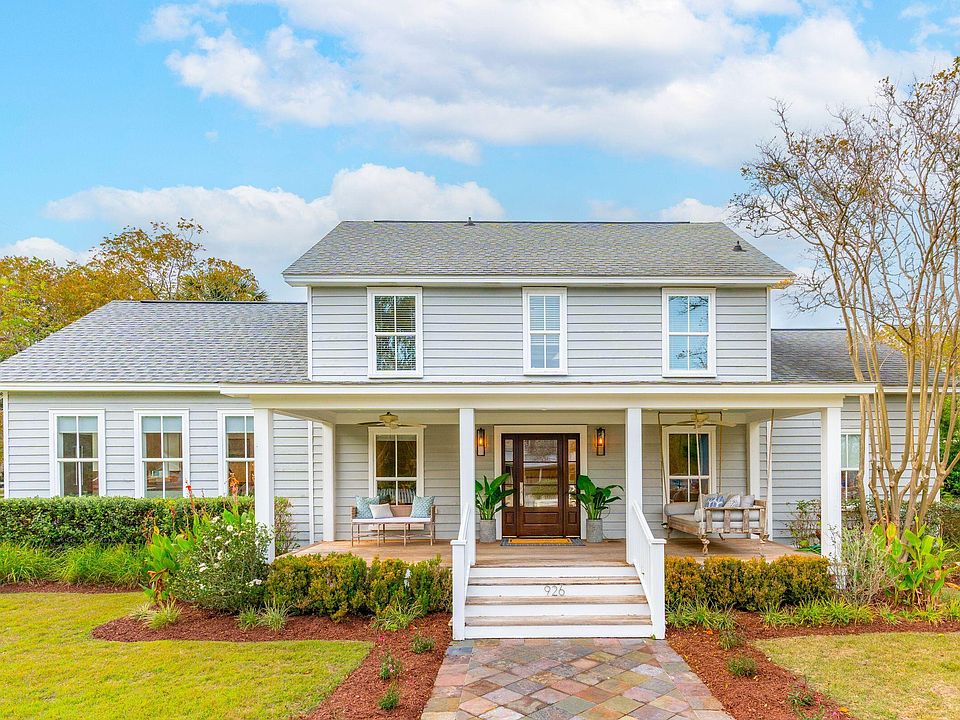 Lowcountry living at it's finest, Old Village beauty with a brand new refresh!! This gem of a home is nestled on a large, corner cul-du-sac lot on Pitt St- one of the most picturesque and sought after locations in Mt Pleasant. Only steps to the Old Bridge for walking, fishing, and kayaking! Walk to Alhambra Park, the Charleston Harbor, or bike to Mt P Academy and the village shops or fine dining. Fall in love with this well-built classic with a chic modern floorplan. Recent renovations were done seamlessly, with impeccable attention to detail and offering modern conveniences for easy Lowcountry living. From the first step onto the welcoming front porch, this charming home invites you in to stay for a bit.Open living, dining, & kitchen areas of the home are a light filled oasis for entertaining or enjoying daily life.The gourmet kitchen is every chef's dream offering Thermador appliances, giant waterfall island, custom cabinetry, glass tile, and tons of storage. Fall in love with the vaulted and beamed shiplap ceilings and custom lighting. The open living area offers a gracious space with wet bar, hammered stainless steel sink, built-in wine fridge, and surround sound wiring. The double French doors from the open living area flow to the charming back screen porch and offer even more places for family and guests to be entertained. The first floor primary suite is well appointed with an office/sitting area, spacious walk in closet, and luxury bath. The spa-like shower, free standing tub, dual sink vanity, and marble throughout, create a custom retreat. 3 additional bedrooms are upstairs with one offering the option of a second primary suite. The en suite bath offers jetted tub, dual vanity, separate shower, and giant walk in closet with extra climate controlled storage. Two additional bedroom share a hall bath with granite counters and offer ample closet space, as well. All bedrooms have crisp finishes and the new white oak flooring throughout the upstairs take these rooms to the next level. Back downstairs, the mudroom with bench and generous storage are adjacent to the giant laundry room with sink, custom cabinets and quartz countertops. The powder room with Thibaut wallpaper and luxurious custom finishes, as well as the giant walk-in pantry, add to the gracious functionality of this lovely home. This home has impeccable attention to detail while honoring the nostalgic influence of the historic neighborhood. It offers energy efficient impact-rated insulated windows, Rennai tankless water heater, energy efficient HVAC systems, and encapsulated crawlspace with dehumidifier and sump pump. American Vernacular architect, Ginger Brewton Interiors, and Level Building Projects were used to create the high-end, well-lit, open floorplan. This wonderful home is a short walk or golf cart ride to the best shops in Mt Pleasant and the award-winning restaurants of Shem Creek and and Coleman corridor. Just 5 minutes to the beach on Sullivan's Island and 15 Mins to historic downtown Charleston. The home at 926 Richter Way is the Lowcountry dream come true!!