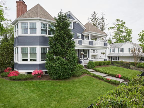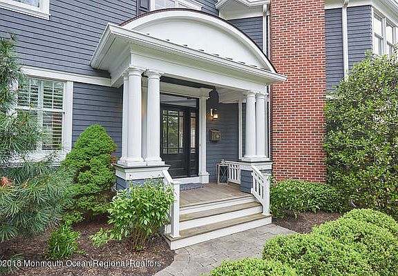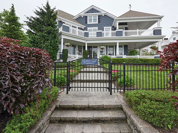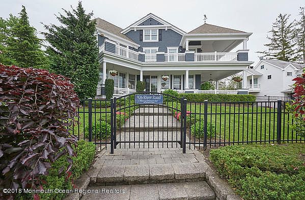 926 River Road, set high above the Navesink with an abundance of natural light, is a modern seashore colonial with 9 ft ceilings, 4 bedrooms, and 4.5 baths and a 2 car garage. Master carpentry can be appreciated in the over-sized moldings and built-ins throughout the home. This home has an open floor plan between living room and kitchen, yet provides the ever coveted respite in either the den or office. With a cathedral ceiling, this dramatic master bedroom,trimmed in shiplap, has 2 closets, en suite bath and sliding doors to upstairs balcony. The second floor has an additional three bedrooms, 2 full baths and laundry. Wraparound porches on both the first and second level provide amazing vantage to spectacular sunsets over the river. The fully finished basement, also with high ceilings,