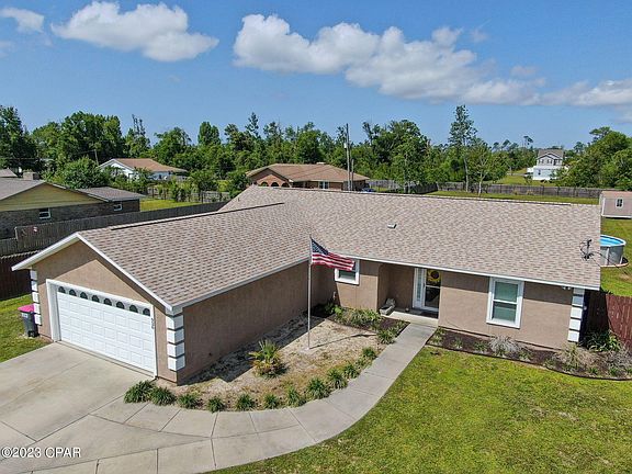 Beautiful 3 Bedroom/ 2 Bath home on .68 Acre with a pool & NO HOA! Conveniently located 6 miles from Tyndall AFB; near public boat ramps, shopping & restaurants! This updated home features a split floor plan with tile flooring throughout. The spacious kitchen features a large island/bar with granite countertops, custom cabinetry, tile backsplash & stainless steel appliances; Across from the laundry area sits a pantry closet/ coffee bar with additional cabinetry. Master bedroom features two closets, double vanity's, tiled shower & jacuzzi tub!