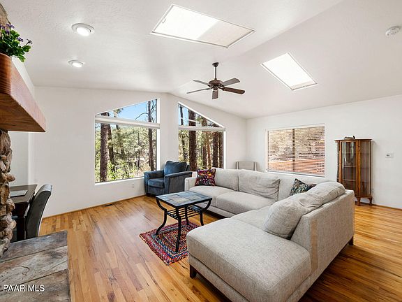 Welcome to your Prescott paradise! Located just a few minutes away from historic Whiskey Row while nestled in the Pines in The Mountain Club neighborhood, this home offers convenience and serenity! This very lightly lived in 3bd/2ba 2 car garage Prescott home in the pines has cozy stone fireplace in the great room with open floor plan and vaulted ceilings. A large deck nestled in the forest for stargazing and entertaining. The master suite has a jetted tub, shower and double vanity. Great family home or rental investment. Ask about potential seller credit on financing. Recent updated deck in 2025. New roof December 2024. Well maintained. This one is a MUST SEE. Seller is owner-agent.