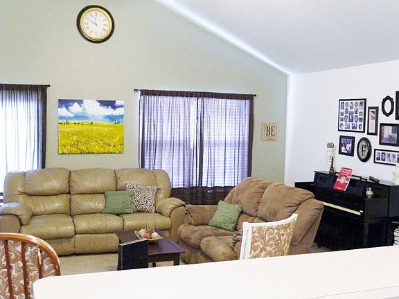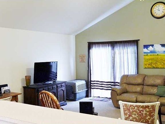 Great opportunity for maintenance-free and affordable lifestyle! Newer construction ranch w/open floor plan and vaulted ceilings. Move-in ready neutral decor. Convenient attached garage and 1st floor laundry. Lots of workspace and pantry in kitchen with breakfast bar and appliances included. Retreat to master suite with access to bath. Additional storage in shed and attic. No neighbors behind