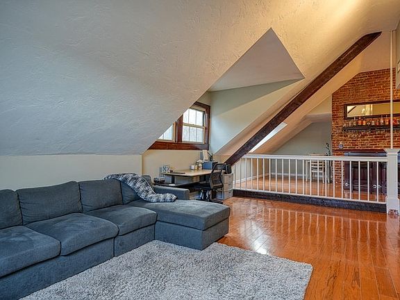A buyers dream....an amazing open floor plan penthouse condo at an affordable price that offers a modern loft-style vibe. This condo complex occupies one of Worcester's greatest historic brick buildings, the former Malvern Road School. This beautiful 2 bedroom top floor unit combines the charm of yesteryear and the conveniences of today's modern condo living. You will love the look of the exposed brick walls, tall cathedral ceilings with exposed beams. Several skylights flood the living space with natural light. An updated white/SS kitchen provides plenty of work and cabinet space and opens up to a spacious dining area. Main living areas feature hard wood floors. In unit stackable washer & dryer included in price. Plus a common laundry in finished basement. This is a well-maintained building with elevator and grand staircase. AC/Heating system installed 6 years ago by previous owner. Great commuter location; walking distance to Holy Cross and minutes to 290, 146, Mass Pike and Rt 20.