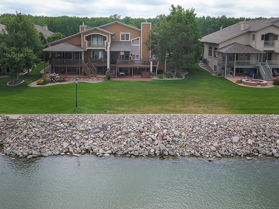 Easy living on the Missouri River! This beautiful twinhome located in Southport Bay on the riverfront features an opportunity for private dock slip for easy access to the river, quick access to walking paths and Riverwood Golf Course. It is also minutes away from shopping and dining. The inside features built-in surround sound, a fireplace on each floor, and a bathroom in the garage. The pain floor has an open floor concept, a walkout deck with panoramic views of the river. The kitchen has a large walk in pantry. The large master suite is upstairs and features a fireplace. Down stairs is a large rec. room, a bedroom and another bathroom, with a non-conforming room as well. Welcome home to carefree living on the Missouri River with picturesque sunsets and views.