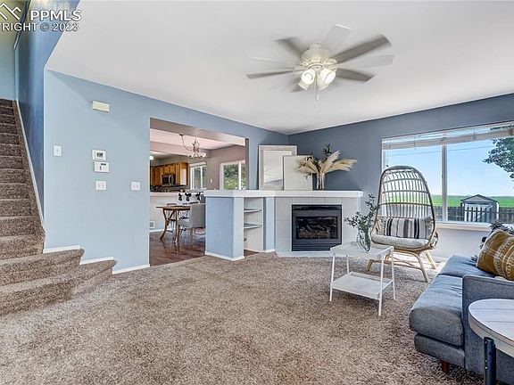 This adorable 2-story home in the Countryside subdivision offers a four bedrooms upstairs a guest suite in the basement and four bathrooms. A spacious eat-in kitchen, formal living room with a gas fireplace and a large family room in the basement! The kitchen features a walk-in pantry closet, plenty of cabinets and counter space with stainless steel appliances. Walk out to the wood deck and enjoy the spacious backyard that backs to private land! The main level of the home has a convenient half bath and laundry room. Upstairs is a huge master bedroom with large walk-in closet with an attached bath for that true master suite feel! Also upstairs are two large additional rooms and a full bath! This floor plan is rare with the fully finished basement. Gorgeous tile that runs throughout the basement level with new LVP in the additional bedroom. This space has an additional bathroom which makes for a great guest suite, office or additional bedroom! In school District 8 within walking distance to Jordahl Elementary & Fort Carson High School. Close to bases, shopping and lots of amenities at your fingertips!