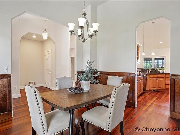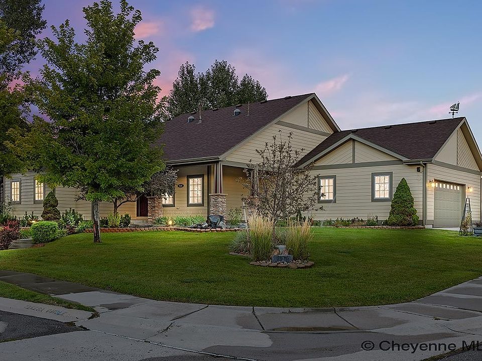 926 Teresa Circle $650,000 5/3/2+ $650,000 This gorgeous home on a premier lot at the Pointe will Wow You!! The half wrap around porch is perfect for sipping your drink and enjoying the gorgeous tree-lined walkway and manicured lawn. Upon entering the dining room you will notice the upgraded wainscoting in the formal dining room, new paint and sparkling refinished hardwood floors. Two primary large bedrooms on the main-floor with en-suite bathrooms are just one of the special features of this home. The Larger Primary boasts a tray ceiling, a five-piece bathroom and dual closets and sinks. The kitchen is vast, and ready for all of your entertaining this year, the family will want to gather and stay a while. The soaring ceilings add spaciousness, and the feature corner fireplace surrounded by stone and rock are as cozy as it gets in this open floor-plan. The adjacent heated sunroom offers year-round enjoyment and opens up to the covered porch with flagstone extension and fire pit. The back yard is fenced, sprinkler system in front and back yards means more time to enjoy Summer. Main-floor laundry, and shop / storage areas in the 3rd bay of the garage is a hobbyist dream. The basement features a large great room, tiled expansive wet bar, electric fireplace and easy entertaining with tiled floor. Two more large bedrooms in the basement enjoy a full bathroom with egress windows. Partial finish in basement allows massive storage or plenty of room for all of your Pinterest Dreams to become reality. This home is exceptional in every way and is well appointed with privacy located on the entrance of a cul de sac. The Pointe is the ultimate destination in Cheyenne for walking paths, common space, parks and open space to enjoy the perfect balance of privacy in this well-planned neighborhood! Call your favorite REALTOR today and make an appointment.