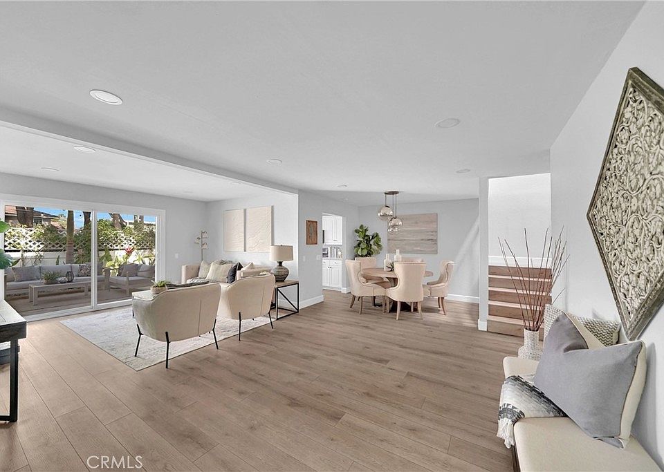 Not only is this a fabulous location, but this turnkey and gorgeous, attached SFR end-unit offers a great layout with many fresh updates & upgrades! You must see to appreciate the total package, including 3 newly renovated baths, recessed lighting, some closet built-ins, new quartz countertops, wood-look LVT throughout, fresh paint, and black matte hardware. The kitchen features almost new, black stainless, Energy Star appliances with smart wifi technology. The 5-burner gas range includes a middle grill and the true-convection oven includes an air fryer. The kitchen pantry has pull-out drawers for best access! Also downstairs, the 4th bedroom would make a terrific office, den, or playroom. The upstairs offers an inviting and spacious primary suite with a brand new, tres chic bath featuring porcelain tile shower walls, a large room-for-2 shiny tub, dual sinks and long shaker vanity, all tastefully embellished with black matte hardware. Check out the large, walk-in closets in both the primary suite and one of the 2nd bedrooms! For your comfort, we offer a new AC condenser and dual-zone system, with the existing furnace unit moved to the attic. The upstairs level actually gets cooled now! The outdoor spaces are varied with 2 roomy and private balconies off the bedrooms and a restful wrap-around, enclosed patio off the living room that feels like paradise with its majestic palm trees and other tropical plants. The association grounds include a fabulous greenbelt just outside your back gate and two swimming pools with bubbling spas. You'll appreciate the freshly painted white walls and the epoxy floor of the attached, 2-car garage with direct access that looks worthy of race cars. Vroom, vroom! Conveniently located near the 73, 405 and 55, and with a very walkable score of 78, you're near the best shopping, dining, theater, and recreation that Costa Mesa?s South Coast Metro and SOBECA offer. Not only those, you're near the heart of Ramen Row!