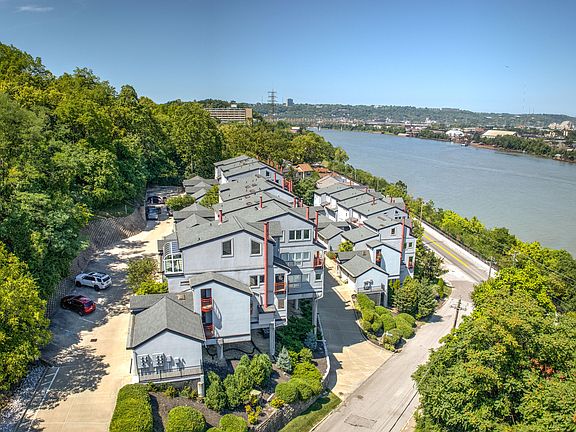 This incredible 2 bedroom, 2.5 bathroom condo is centrally located with panoramic city and river views! The entire interior has been freshly painted and new carpet installed throughout making it move-in ready. The living room features cathedral ceilings, skylights, and a wood burning fireplace. Each bedroom has a full ensuite bathroom and a half bath is located in the common area for guests. Rare large storage room is located inside of the unit, plus 1 car garage and assigned parking space included. Within 6 minutes of Cincinnati, Devou Park and Covington.