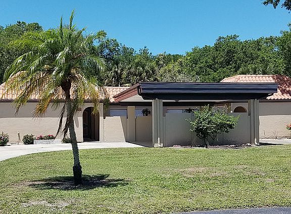 Private jewel in surrounding neighborhood of luxury homes.  Affordable spacious 3 bedroom two bath 55+ villa with many updates. Open floor plan allows you to visit while you cook in galley kitchen. New great room, possibly office, den, with new heat & air. Each guest bedroom has a beautiful view of  private patio area.  New roof, New insulation, New gutters, Updated plumbing, Updated electrical, New flooring, Freshly painted interior & exterior, Updated bath, and New timer activated Hot water heater. Open patio at entryway, private courtyard off living dining room, and large back yard allow to watch peacocks strut past you. Exterior storage shed with electric and water. Quiet spacious 55+ community in fast growing North East Bradenton. Pet friendly. Many amenities in neighborhood including pool, fishing, tennis courts with access to Manatee River. Maintenance fee provides you with cable, trash, recycle, grounds maintenance, community pool, and security. Rental spaces for RV or boat. Close to New Fort Hamer bridge, Lakewood Ranch, Medical school, dental school and shopping malls. 30 minutes to beaches. Your winter home? Investment Property? Permanent Home? Must see to appreciate.