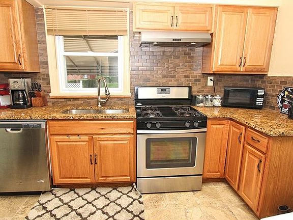 Pristine brick colonial updated w/neutral décor throughout. Current paint colors w/white trim, windows, new interior doors. Spacious & bright LR w/3 windows, an elegant decorative fireplace w/wood mantle & surround. DR w/ 2 windows opens to KIT for easy serving. Updated KIT w/tile flr, backsplash, warm wood cabinetry, earth tone countertops, and stainless dishwasher, gas stove, & oversized sink w/gooseneck faucet. Stainless front refrigerator. Updated full bath w/new vanity/faucet. Covered deck off of kitchen leads to lovely, almost level yard. Move in ready & convenient to Parkway, downtown, & airport. Close to Carnegie's shopping & dining district. Zoned C-2.