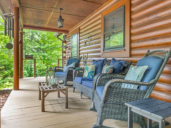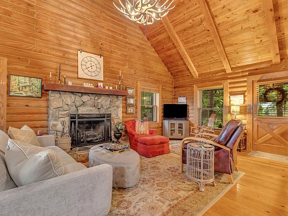 Discover the charm of mountain living on White Oak Mountain with our exquisite log cabin featuring a distinctive green roof and a welcoming front porch, all sited on 2.4 pristine acres! This stunning 3 bedroom & 2 bath cabin not only offers a cozy retreat in nature but also showcases exceptional craftsmanship and attention to detail. Features include: Hardwood floors, Stone Fireplace with gas logs, cathedral ceiling, wood beams, spacious sunroom, a side deck for morning coffee overlooks year round views, storage shed, additional storage/workshop under house!. Enjoy a primary bedroom on main level or second level primary bedroom has an ensuite bath. The HOA features scenic fishing ponds, Pavillon for community or private parties, picnic area, walking trails, plus Shunkawauken Falls! Perfect for weekend getaways or as a serene permanent residence, it harmonizes with its surroundings while providing modern comforts. Too much too list, call for a tour today! Embrace the tranquility of cabin life and make this unique property your own today. Come make new friends in the scenic mountains of North Carolina.