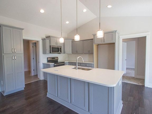 Classic Builders presents the Reagan 55 plan. With over 2,800 sq. ft. quality finish, 4 bedrooms, 3.5 bathrooms and 3 car attached garage! Open floor plan with vaulted living room ceiling, stone fireplace and eat-in kitchen featuring hardwood flooring, large pantry, island/breakfast bar, tile backsplash, stainless steel appliances, recessed and pendant lighting! Lots of privacy too with 2 bedrooms on one end of the home, sharing a Jack-N-Jill bath and the master suite on the opposite side of the home revealing a master bath with double vanity, tiled shower, jacuzzi tub and large walk-in closet. This home also features a half bath and mudroom/laundry room with built-in lockers, and separate walk in pantry. Over 1,100 sq. ft. finish in the lower level with, providing a family room with wet bar, full bath, 4th bedroom and tons of storage space. Pictures Similar to Classic Builders Reagan plan.